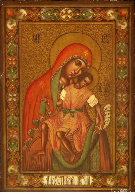 По преданию, это одна из икон, написанных святым евангелистом Лукой. Иногда она называется Киккскою от названия горы Киккос на острове Кипр. Милостивою же икона называется потому, что Матерь Божия изображена на ней умоляющей Сына и Бога Своего о спасении рода христианского.
