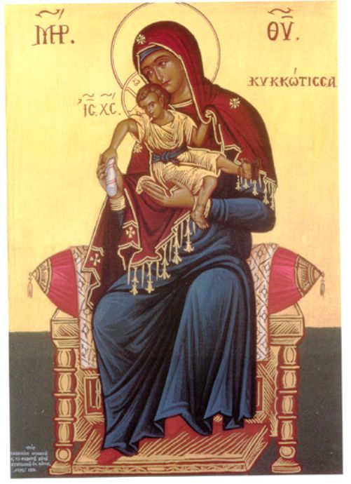 Однажды у императора Алексия Комнена заболела неизлечимым недугом дочь. В это время в Царьград прибыл правитель острова Кипр Мануил Вутомит, которому было внушение свыше выпросить у императора Алексия чудотворную икону для обустройства монастыря на кипрской горе Киккос. После того, как император пообещал отдать икону, дочь его чудесным образом исцелилась. Но императору стало жалко отдавать икону Божьей Матери «МИЛОСТИВАЯ» (КИККСКАЯ) , и он стал оттягивать исполнение своего обещания.